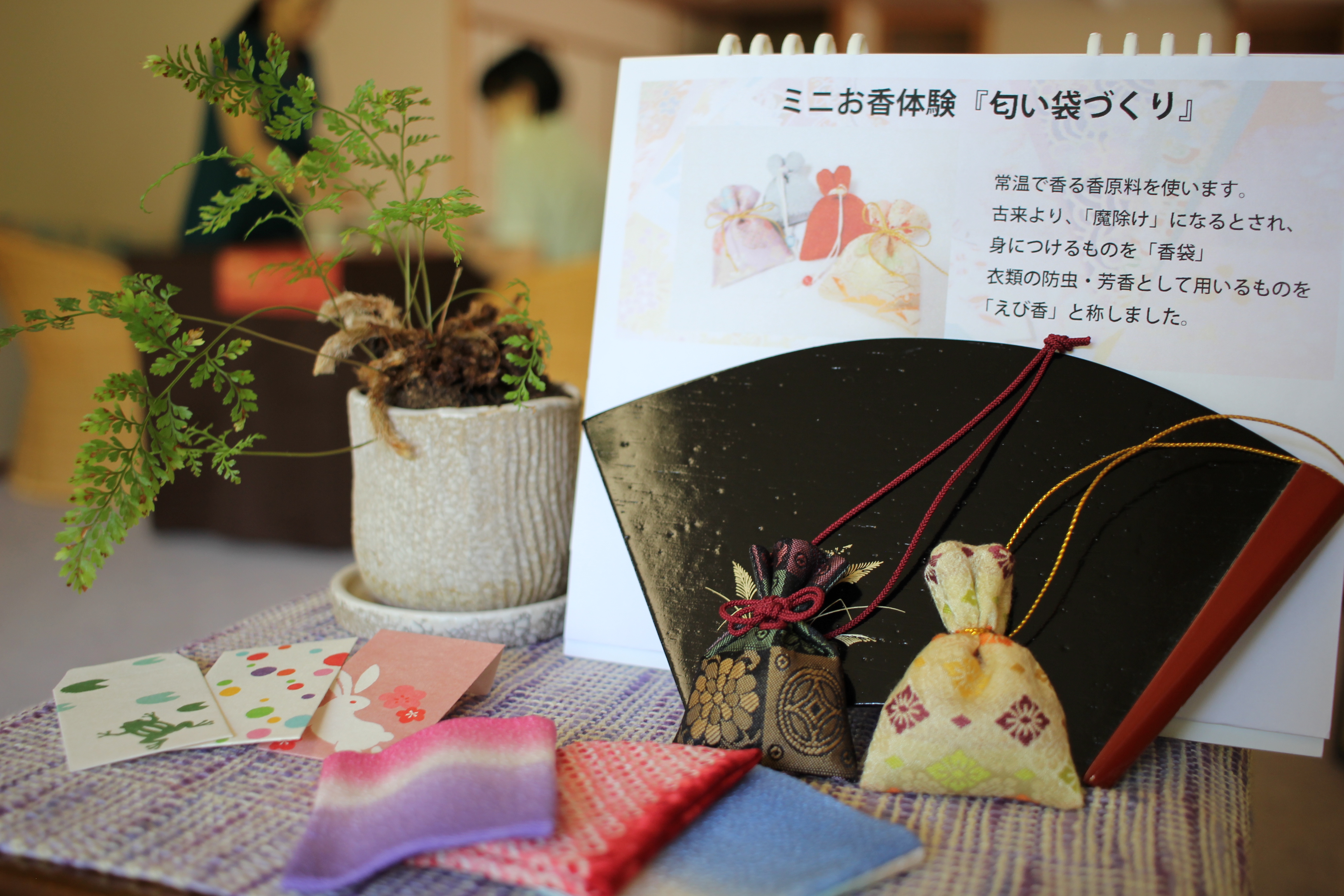 天然香原料で、オリジナルの匂い袋作りを体験いただけます。